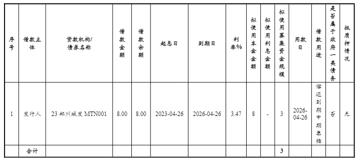 【大河财立方消息】3月10日,郑州城市发展集团披露2026年度第一期中期票据发行文件。